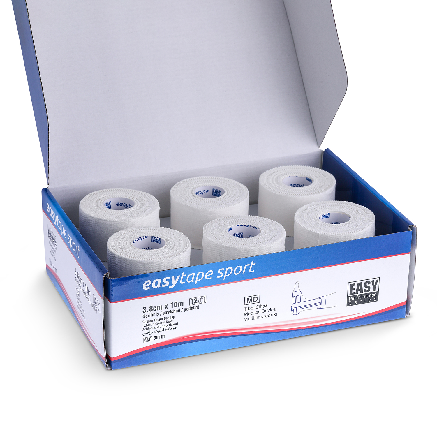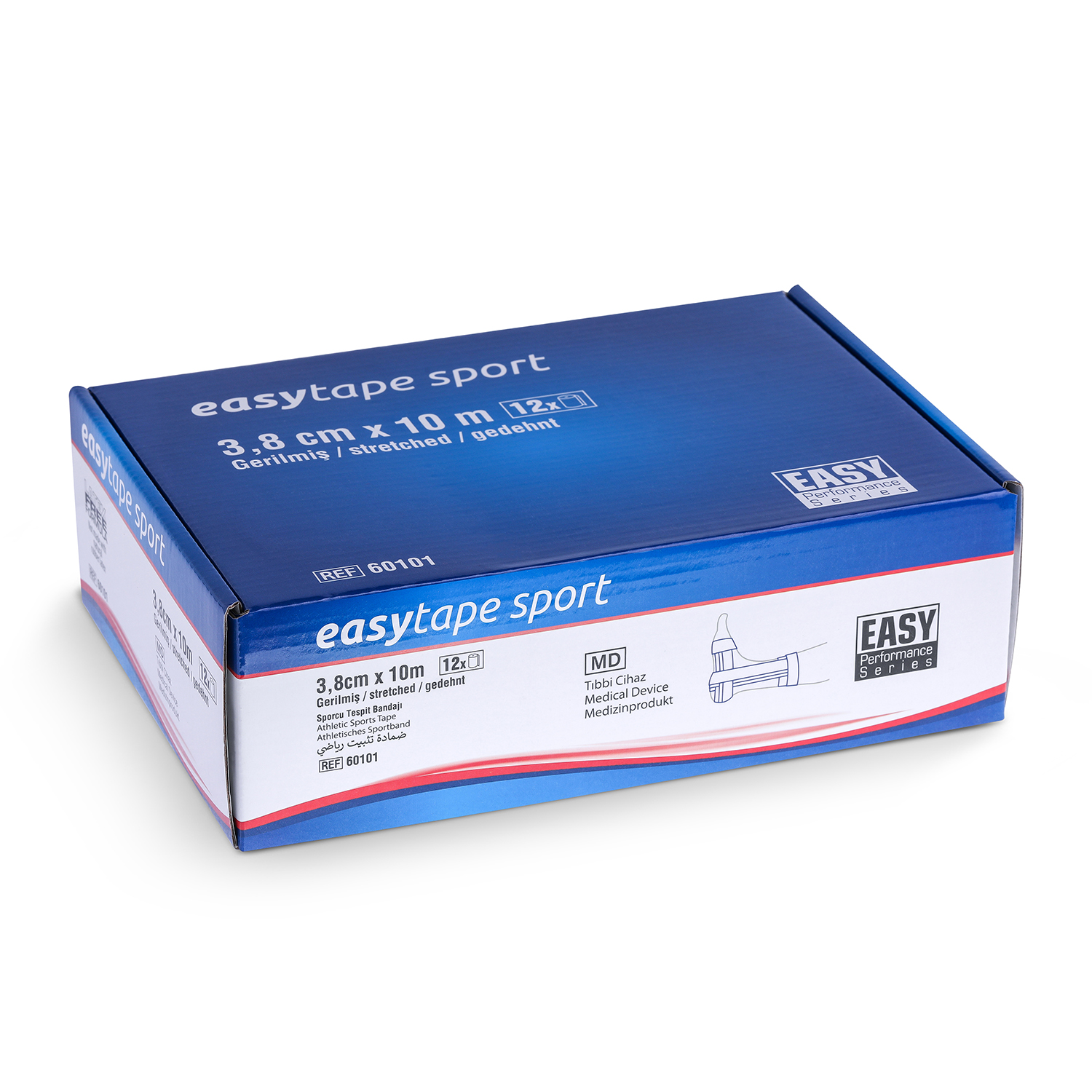 EASY TAPE SPORT; içeriğindeki çinko oksitli hipoalerjenik yapışkanı ve lateks içermeyen özel formülüyle, hassas ciltlerde bile güvenle kullanılabilen rijit bir sporcu bandajıdır. Viskoz dokumalı esnek olmayan yapısı, sert eklem immobilizasyonunda ve burkulmalarda ihtiyaç duyulan ekstra güçlü desteği ve stabilizasyonu eksiksiz sağlar. Spor yaralanmalarının önlenmesinde (profilaksi) profesyonel bir koruma sunan Easy Tape Sport, elle kolayca yırtılabilme özelliği sayesinde sahada veya klinikte hızlı ve pratik bir uygulama imkanı tanır.