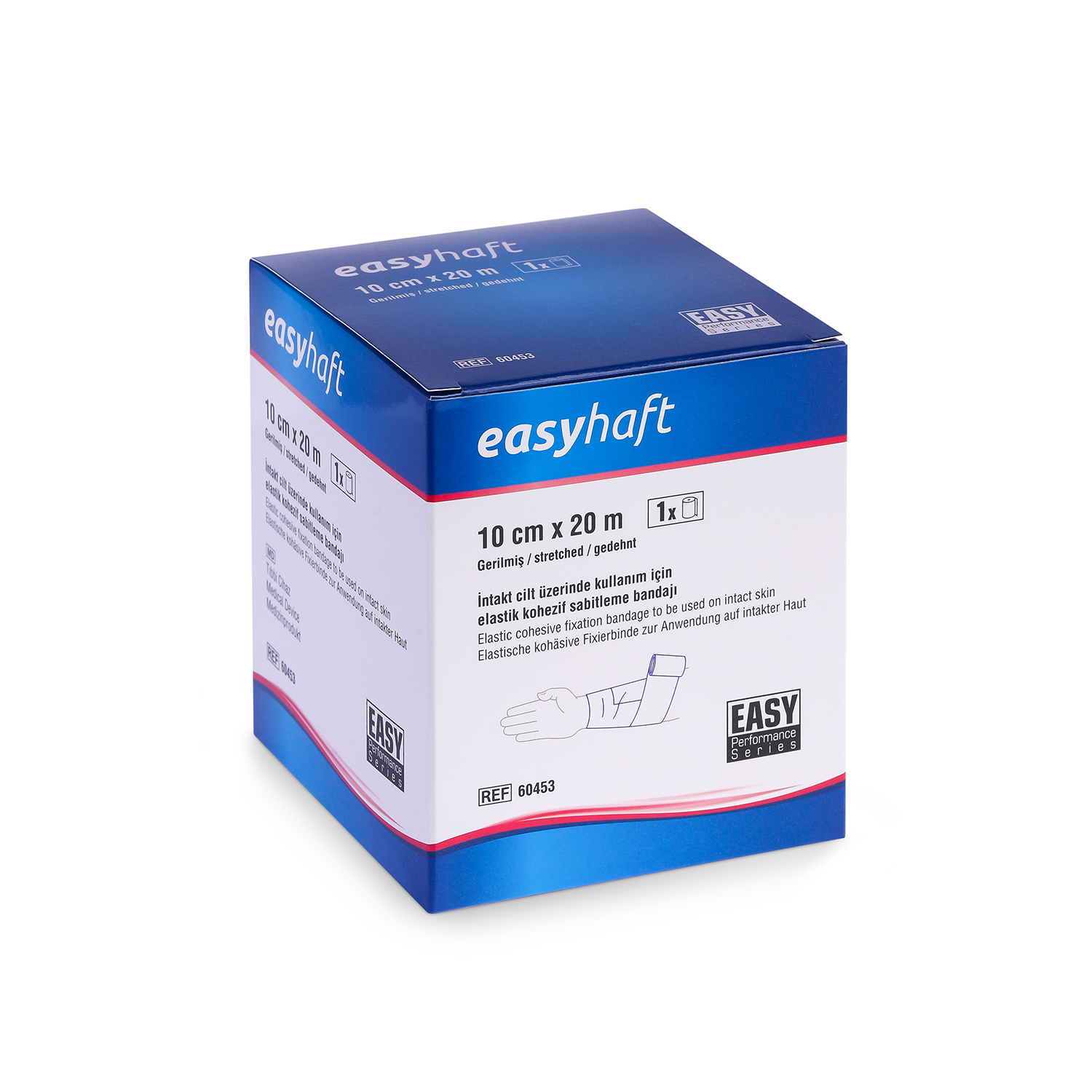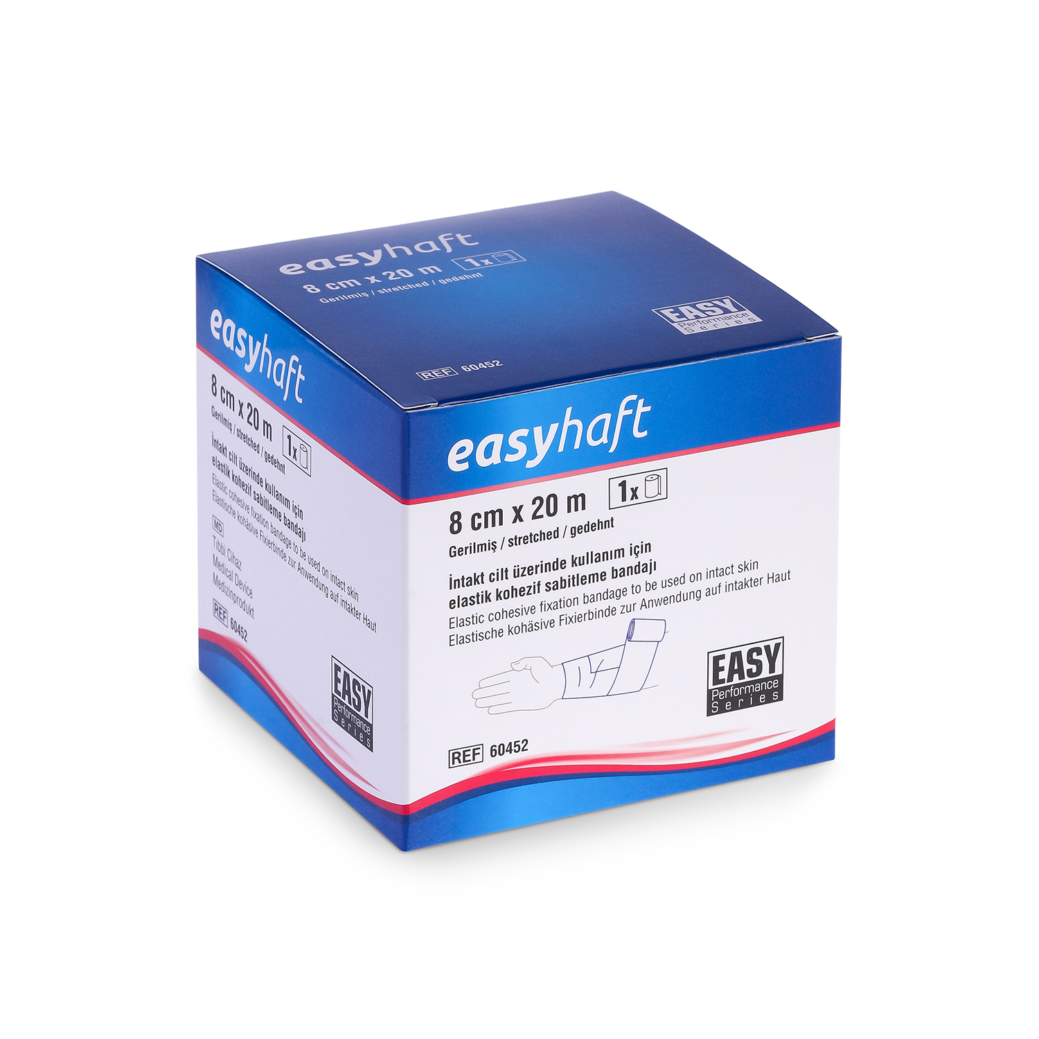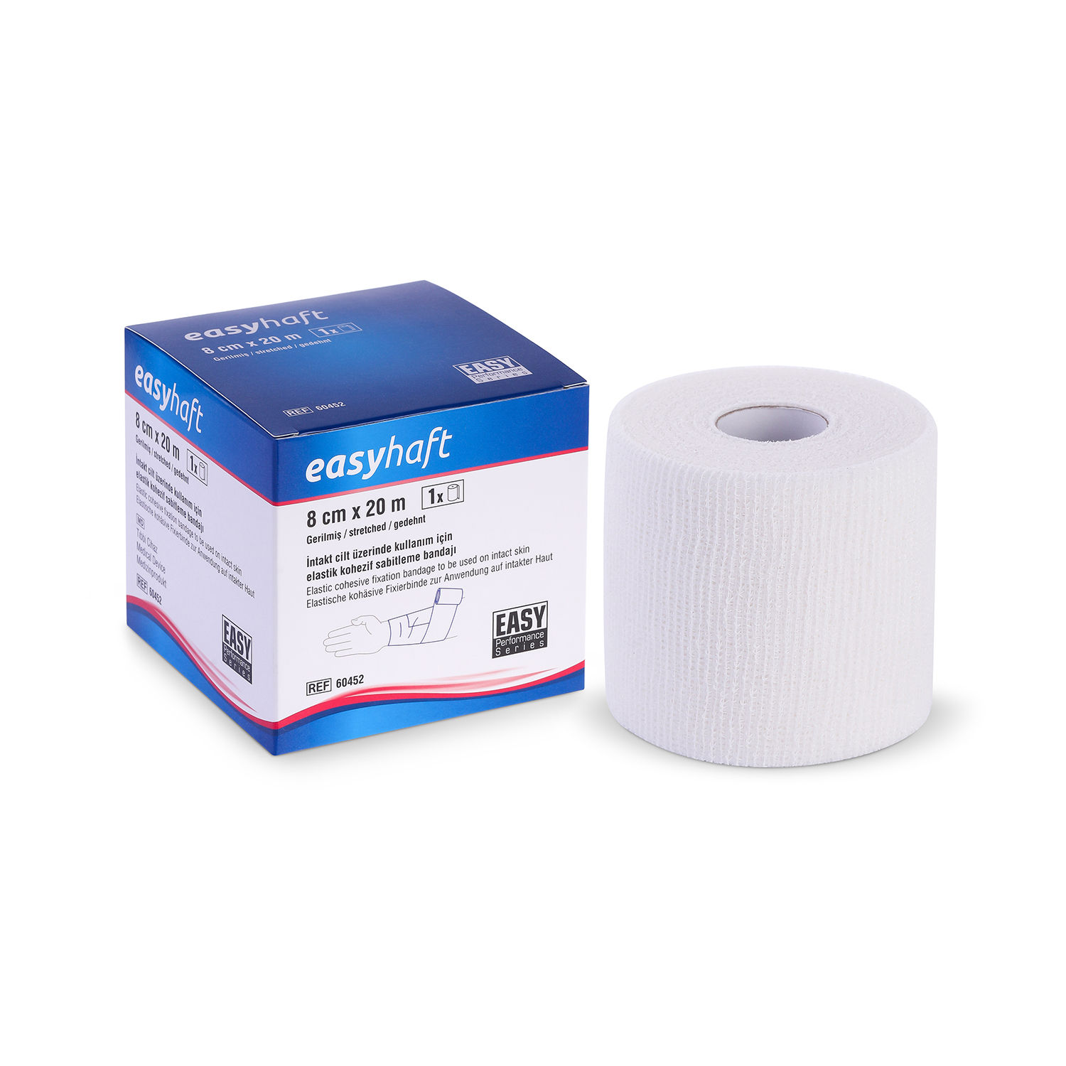 EASYHAFT; açık gözlü özel dokuma yapısı sayesinde cildin nefes almasını sağlayan, yüksek esnekliğe sahip, kendi üzerine yapışan gözenekli bir bandajdır. Yüksek gerdirme direnci ve kayma yapmayan dokusuyla; alçı atellerinden yara pansumanlarına, eklem bandajlarından dolgu malzemelerine kadar her türlü sabitleme (fiksasyon) işleminde güvenle kullanılır. Sadece kendi üzerine yapışma özelliği sayesinde cilde veya kıllara yapışmaz, çıkarılırken acı vermez ve cilde dosttur.