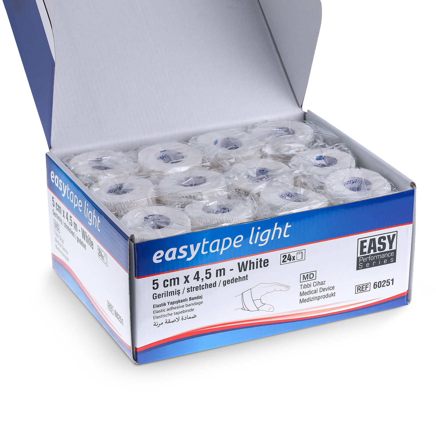 EASYTAPE LIGHT ®, pamuk ve poliüretan karışımı özel formülüyle, kas ve eklemlere ihtiyaç duyulan güçlü desteği sağlarken hafifliğiyle üstün konfor sunan, elle yırtılabilir elastik yapışkanlı bir bandajdır. Uzun süreli tedavilerde dahi mükemmel yapışma performansını korur. Hava geçirgen yapısı sayesinde cildin nefes almasını sağlayarak maserasyon (cilt yumuşaması) riskini önler. Burkulma ve incinme tedavilerinden spor yaralanmalarının önlenmesine (profilaksi), pansuman sabitlemeden varis ve ülser için kompresyon (basınç) uygulamalarına kadar geniş bir kullanım alanına sahiptir.
